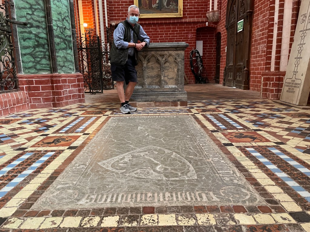 Pribislaw och hans släkt har ett gravkor i Doberaner Münster i Bad Doberan. I bild ses Gunnar Ekberg. Och ja, när kortet togs var det munskyddsplikt i princip överallt. Foto: Lena Breitner