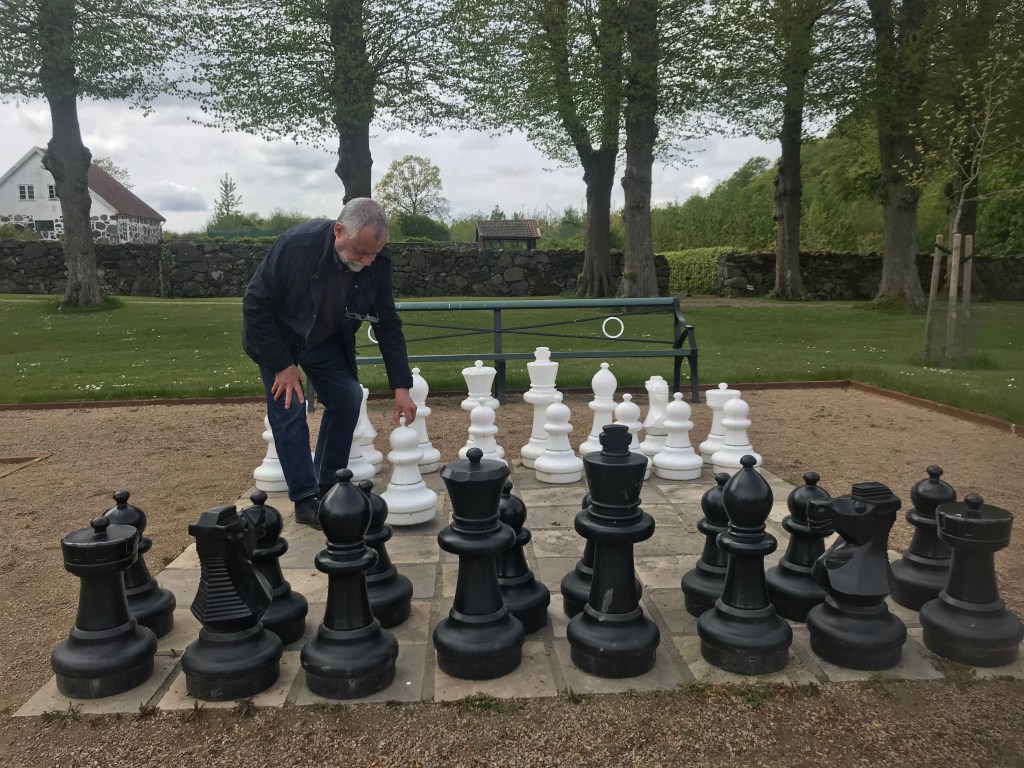 Gunnar Ekberg spelar schack på Maltesholm i maj 2020. Foto: Lena Breitner